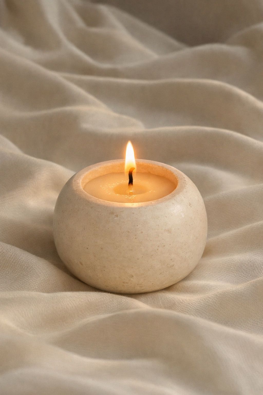 Con su forma redondeada y textura suave, esta vela simboliza equilibrio y serenidad. Su diseño minimalista invita a la contemplación y aporta un toque orgánico y moderno a tu decoración.